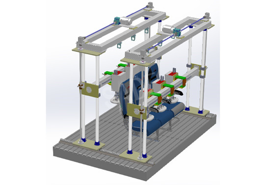 功能簡介: 本試驗臺可完成航空座椅振動耐久試驗,采用液壓伺服技術,執行器部分采用液壓缸作為激振源,電控部分采用上下位機方式的數字式實時控制系統。
